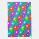 Retro Black Rainbow Colourful Flowers Pattern Kitchen Towel