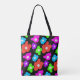 Retro Black Rainbow Colourful Flowers Pattern Tote Bag