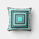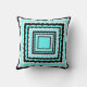 Fun throw pillow with a retro 60's design in black white and aqua. Concentric squares of colourful rick rack patterns give this pillow a 1960's psychedelic look with a modern twist using trendy colours. Make a splash in your home decor!
