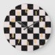 Retro Black White Checks Chequerboard Pattern Large Clock