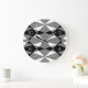 Retro Black White Triangle Squares Mosaic Pattern Large Clock