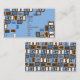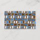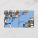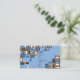 Business card with a retro-inspired graphic in a gamut of blue, brown, and white