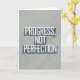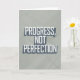 A cool, vintage-inspired card delivering a powerful message: "PROGRESS, NOT PERFECTION." The text features bold, stacked block lettering with a drop shadow effect, reminiscent of classic 8-bit or retro design styles. Set on a subtle gray-green background with minimal line details, this card is excellent for conveying a message of consistency and effort. It’s ideal for coaching clients, students facing exam pressure, gym buddies, or as a general motivational gift for anyone adopting a growth mindset. This design offers a fresh, stylish way to share an uplifting and practical message.