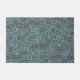 A retro style dusty aqua and brown pattern decorates this stylish doormat. The design is from original art.