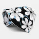 A pretty and contemporary floral pattern with flowers in light blue and white with black highlights and background. A modern yet retro floral design.