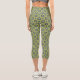 Retro Blue & Black Daisies on Green Floral Pattern Capri Leggings