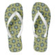 Retro Blue & Black Daisies on Green Floral Pattern Flip Flops