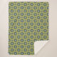 Retro Blue & Black Daisies on Green Floral Pattern Sherpa Blanket