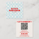 Retro Blue Bold Groovy QR Code Chequered Trendy Square Business Card