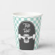 Retro blue check Skateboard two rad 2nd Birthday Paper Cups