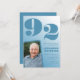 Retro Blue Gradient Photo 92nd birthday invitations for him