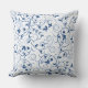 This pretty pillow features a delicate blue leaf swirl design on a white background. A pale blue shadow of the pattern gives added interest in the background. Both sides of the pillow have the same design.