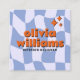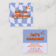 Retro Blue Orange Bold Groovy Checkered Trendy Fun Square Business Card