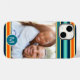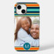 Retro Blue Orange Striped Monogram Custom Photo Case-Mate iPhone Case
