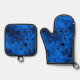 Retro Blue Paint Splatter Oven Mitt & Pot Holder Set
