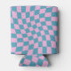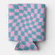 Retro Blue Pink Pastel Warped Chequerboard Can Cooler