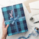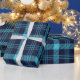 Retro Blue Plaid Whimsical Christmas Wrapping Paper