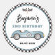 Retro Blue Race Car Two Fast Boy 2nd Birthday Classic Round Sticker