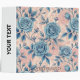 Retro Blue Rose Pattern on Soft Pink Background Binder