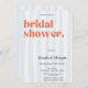 This simple and boho bridal shower invitation features retro typography on a blue striped background. These bridal shower invitations are easily customized for your event by simply adding your details.