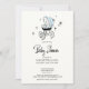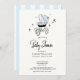 Retro Blue Watercolor Stroller Script Baby Shower Invitation