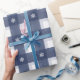 Retro Blue White Christmas New Year Plaid Wrapping Paper