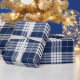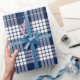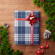 Retro Blue White Christmas New Year Tartan Plaid Wrapping Paper