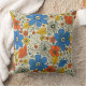 Retro Blue, Yellow & Orange Floral Throw Pillow