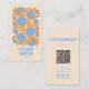 Retro Blue Yellow QR Code Groovy Floral Funky Boho Business Card