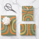 Retro Boho Abstract Confaab Contemporary Pattern Wrapping Paper Set. Vintage colours; modern lines; muted orange and olive green tones. By Kierkegaard Design Studio.