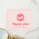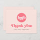 Business thank you card featuring the text "Thank you" in a retro style font. Pink (or custom colour) text on a light blush pink background. Upload your logo on the front and add custom text on the back. You can change colours, move and resize elements with the design tool.