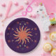 Retro Boho Coral and Purple Sun and Moon Paper Plate
