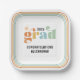 This graduation party paper plate offers a retro theme featuring boho colours. This paper plate makes a great personalized addition to your party decor.