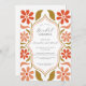 A groovy retro boho floral bridal shower invitation with a vibrant bohemian style reminiscent of the 60's and 70's, with type in the centre of a pretty symmetrical shape border surrounded by flowers.