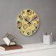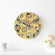 Retro Boho Hearts and Circles 70s Groovy Pattern Large Clock