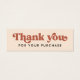 Thank you for your purchase mini insert card with white text "Thank you" ina retro style font. Terracotta brown (or custom colour) text on a paler background. Add your own logo on the back. You can change colours, move and resize elements with the design tool.