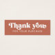 Merci pour votre achat mini carte d'insertion avec le texte "Merci" dans une police de style rétro. Texte blanc (ou couleur personnalisée) sur un arrière - plan marron en terre cuite. Ajoutez votre propre logo sur le dos. Vous pouvez modifier les couleurs, déplacer et redimensionner les éléments à l'aide de l'outil de conception.
