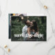 This trendy and boho save the date card features two of your favourite personal photos, with retro white handwritten text. The back of the card also features more of your wedding details, plus a scannable QR code to provide your guests with more info. A simple and stylish look that will fit perfectly with your wedding style!
