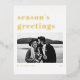 Season's Greetings! Send your holiday wishes to family and friends with this customizable gold foil Season's Greetings postcard. It features retro bold typography with a Christmas tree accent. Personalize this photo holiday postcard by adding your own details. This modern holiday postcard is available in other colours.