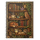 A cozy retro-inspired design featuring a charming bookshelf filled with vintage books, delicate botanical accents, cute woodland animals and a comforting cup of tea or coffee.