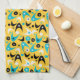 Retro boomerangs and starbursts kitchen towel. Background colour can be customized.