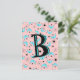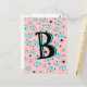 Retro boomerang starburst monogrammed postcard. Background colour can be customized.