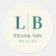 This is a minimalist style image featuring an elegant thank you card with the initials "L | B" prominently displayed in a sophisticated teal font. The background is a soft, creamy white that enhances the refined and understated elegance of the design. Below the initials, the words "THANK YOU" are written in a classic serif typeface, followed by the date "MAY 23, 2026." The overall mood is one of gratitude and appreciation, making it perfect for expressing heartfelt thanks on special occasions or as a follow-up to memorable events.