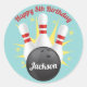 Retro Bowling Birthday Party Classic Round Sticker