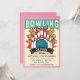 Retro Bowling Party Birthday Invitation - Inspired by retro 60's posters, this fantastic invitation will be right up your alley. No gutter balls here. Only the perfect strike for kids or adults with this fresh and colourful bowling party invitation. Hey folks get in the right lane and let's bowl!