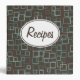 A brown and aqua square pattern decorates this retro style recipe binder. Use this empty binder to organize your favourite recipes. The design is from original art.
