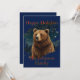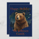 Retro brown bear midnight starry landscape invitation