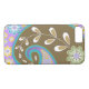 Retro brown paisley motif custom iPhone 6 design featuring a paisley motif in turquoise, brown with yellow flowers on purple background. This retro/vintage style feminine design is a great gift for women.