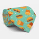 Retro style cheeseburgers and French fries pattern with small white hearts on a blue background neck tie.