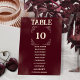 Retro Burgundy Ivory Wedding Seating Guest Names Table Number